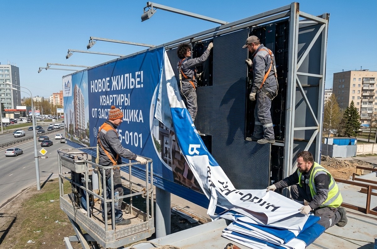Монтаж рекламных баннеров в Барнауле, Бийске